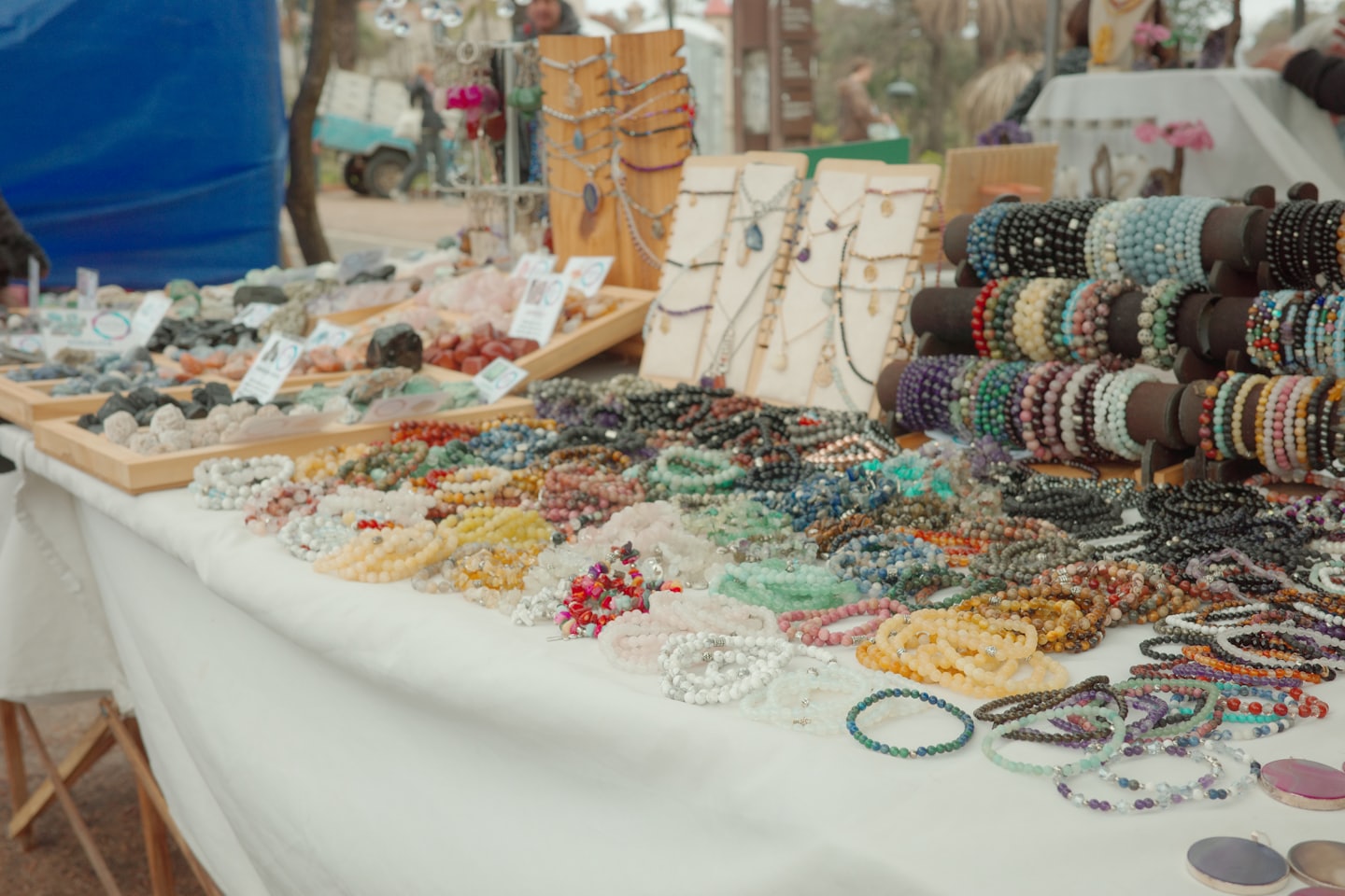 Explore unique chainmaille jewelry pieces displayed by skilled artisans.